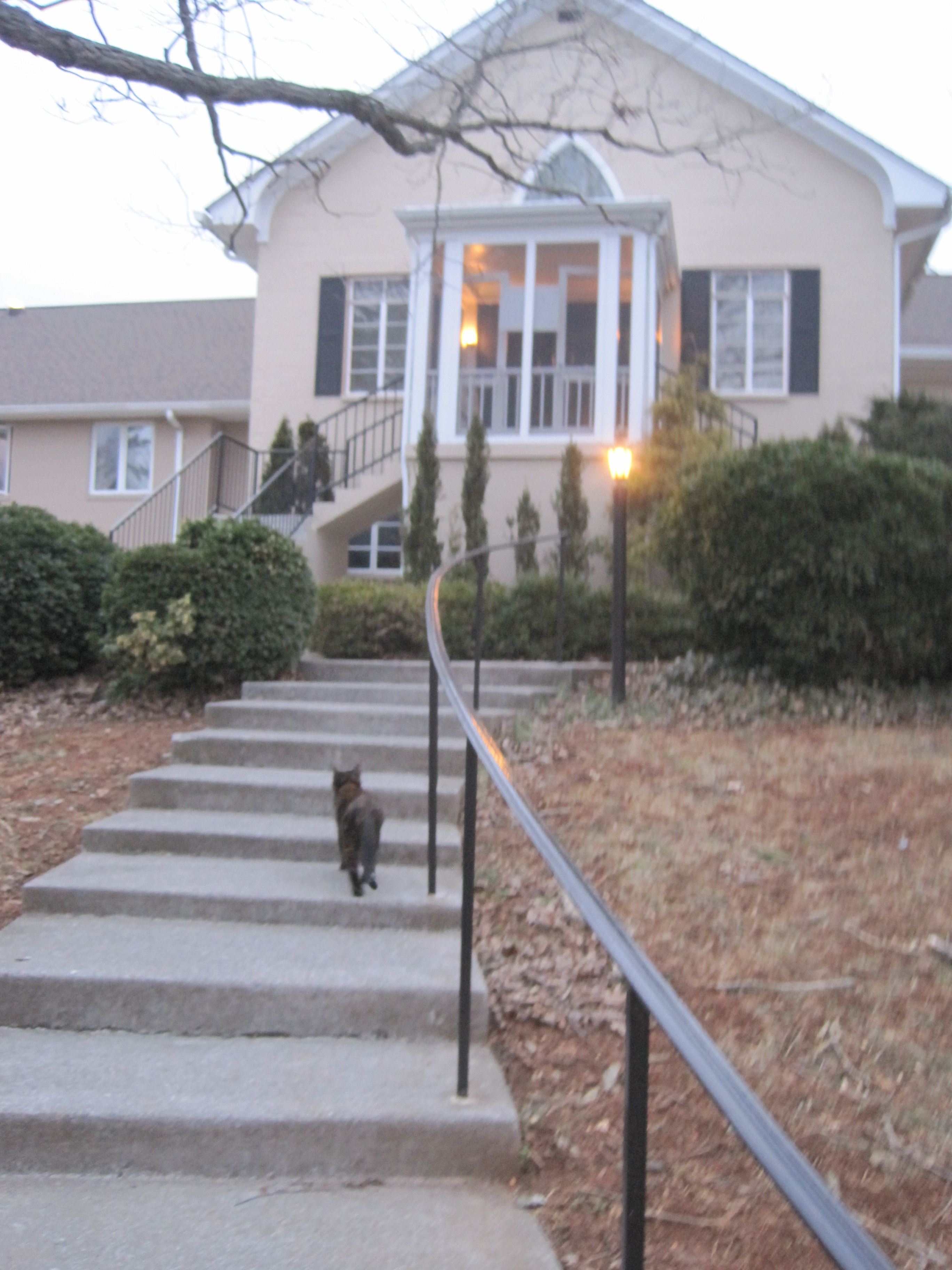 But I attended all the services the first day–witnessing the monks chanting is mystical and breathtaking. I was grateful to have experienced such beauty. The second morning as I walked outside for 7am Lauds, I debated whether I ought to attend service or meditate by the pond as the sun rose. I was literally at a crossroads–the path diverged–when a cat walked right up to me. There are a lot of cats on the property. But I had not seen this cat before. And all the other cats were, well, cats. Stand-offish and skittish with humans. This cat meowed loudly and purred up against me. And literally led me down the path and up the stairs directly to the door of the Abbey. She stopped to wait for me, and would loop back to get me every time I stopped. I’m a big believer in signs. The only other time I saw this cat the entire weekend was when it waited for me by the Abbey before Mass. God comes to you.